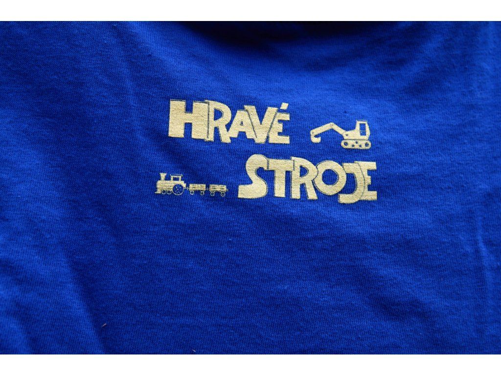 Zadní strana: Potisk - malé logo Hravé stroje (nahoře za krkem)