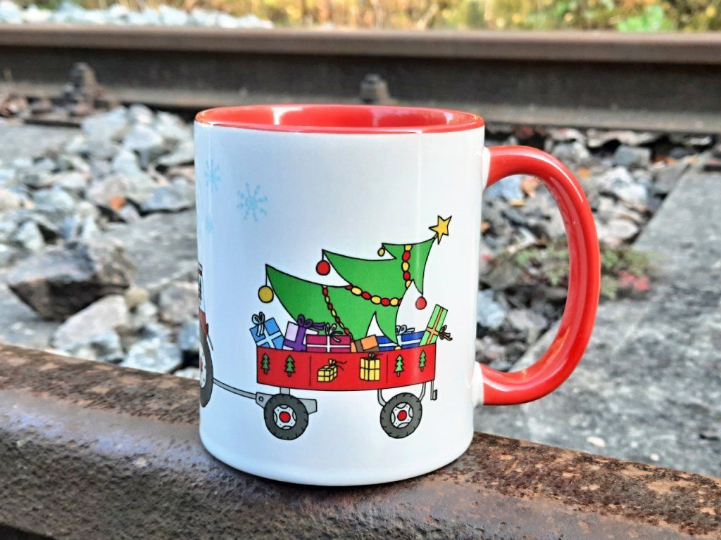 Originální vánoční hrnek s traktorem, stromečkem a dárky pro všechny malé milovníky traktorů!