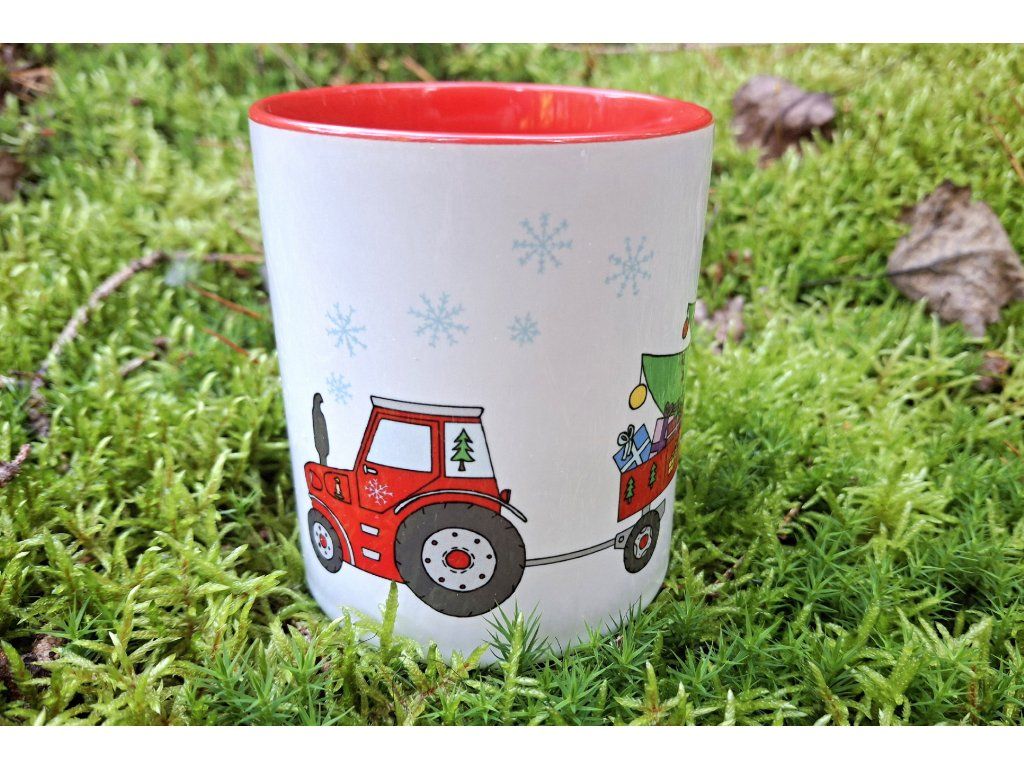 Originální hrnek s vánočním traktorem pro malé milovníky a milovnice traktorů!