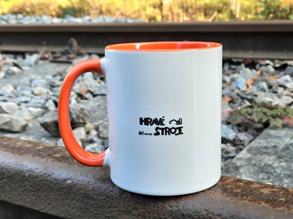 Vnější strana: Bílá s potiskem vozíku zepředu, zezadu logo Hravé stroje