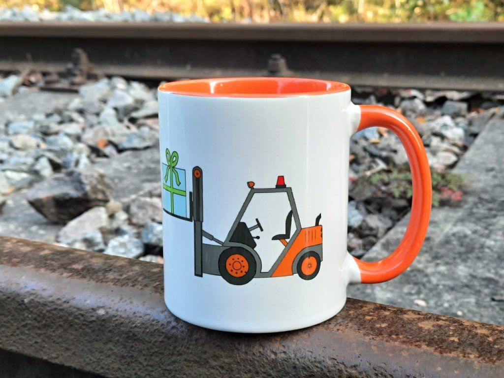 Vaše děti si mohou svoje oblíbené kakao nebo čajík vychutnávat v krásném vánočním hrnku s vysokozdvižným vozíkem. Vánoční vozík s dárkem jsme namalovali pro všechny malé techniky.