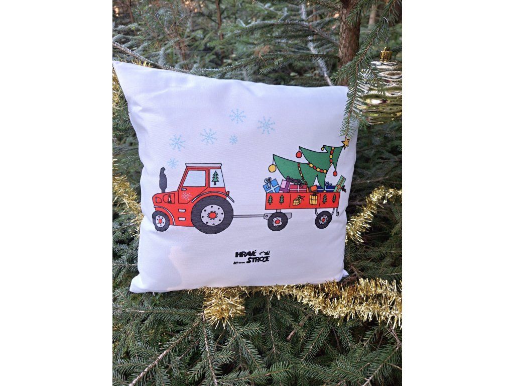 Originální vánoční polštář s traktorem pro malé milovníky a milovnice traktorů!